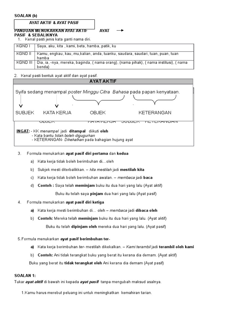 Related : Tukar Ayat Aktif Kepada Ayat Pasif / Kata ganti nama diri kedua ayat aktif ayat pasif awak perlu serahkan buku ini kepada rani..